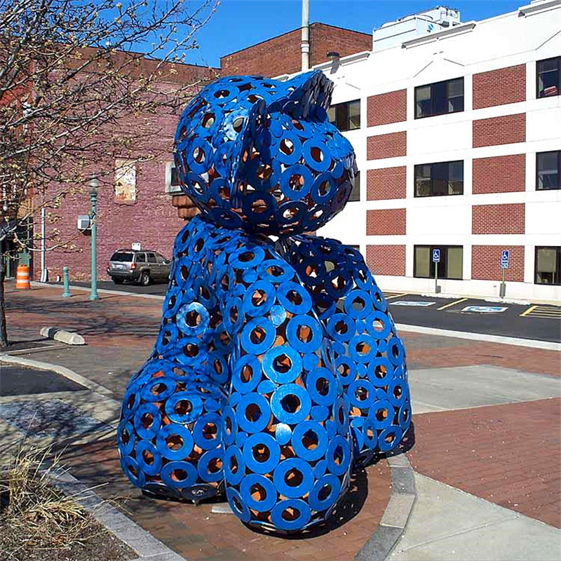 定制大型不锈钢户外雕塑广场金属廊架抽象铁艺镜面熊园林景观摆件